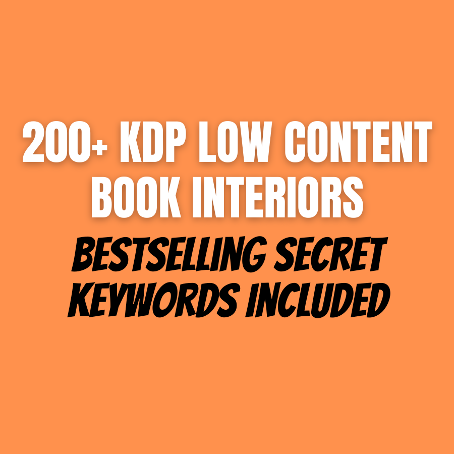 - Review from Mark P.: ⭐⭐⭐⭐⭐ As a self-published author, finding the right keywords for my KDP low content books was always a challenge. That's why I decided to try the "200+ Amazon KDP Low Content Book Interiors With Bestselling Keywords" package, and I'm thrilled with the outcome. The interiors are not only well-designed but also strategically crafted with keywords that resonate with buyers. Since using these interiors, I've seen a noticeable increase in sales, and my books are consistently ranking among the bestsellers in their respective categories. It's a fantastic investment for anyone serious about succeeding in the KDP publishing world.
